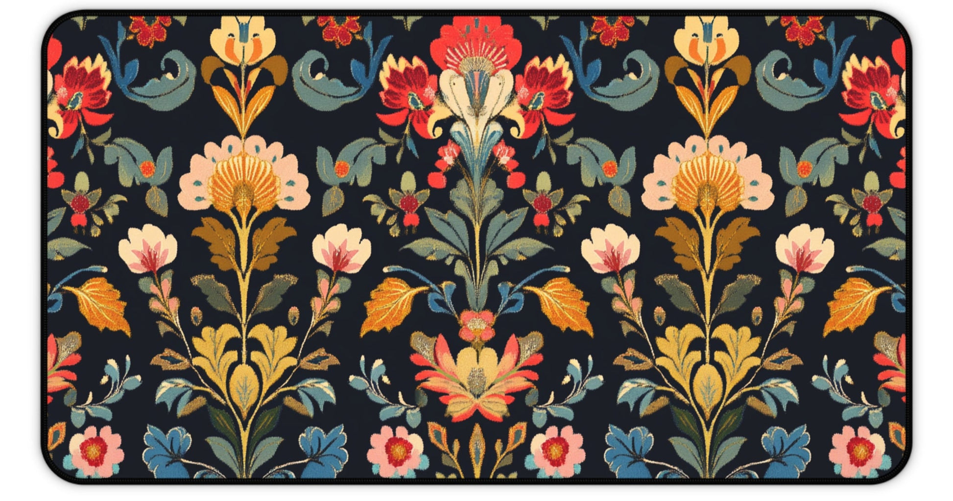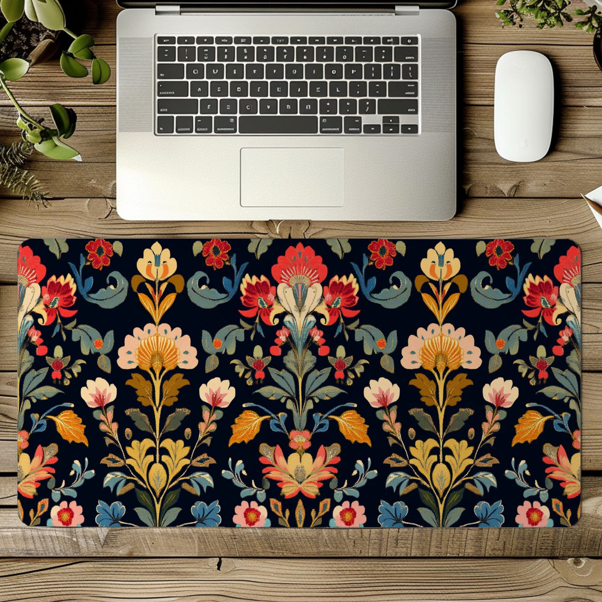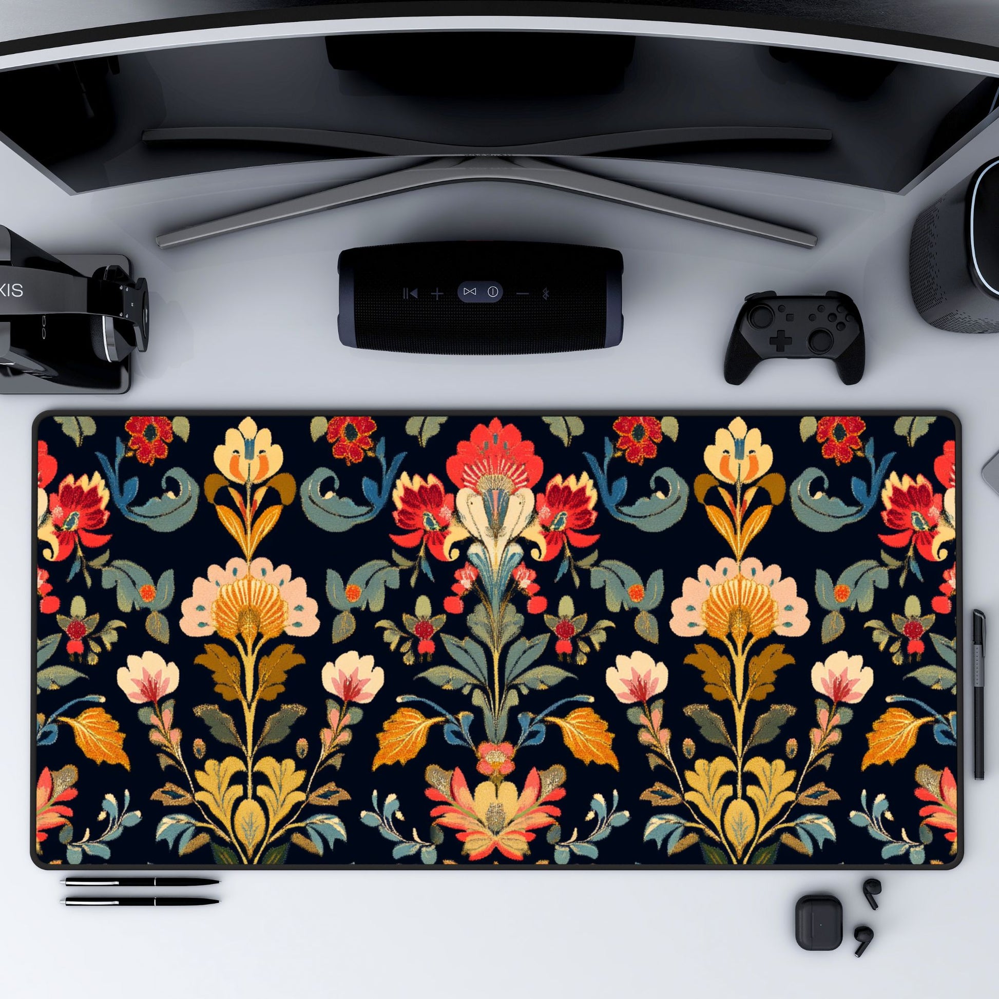 Dark Floral Desk Mat, Mouse Pad, Gaming Mat
